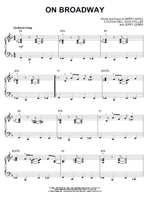 Download or print The Drifters On Broadway [Jazz version] (arr. Brent Edstrom) sheet music, chords and digital score arranged for Piano Solo. This Jazz score includes 3 page(s).