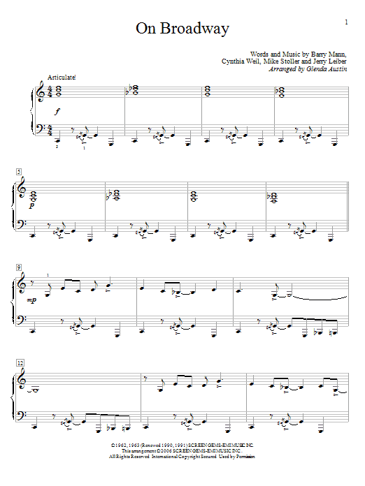 Download or print Glenda Austin On Broadway sheet music, chords and digital score arranged for Educational Piano. This Musical/Show score includes 3 page(s).