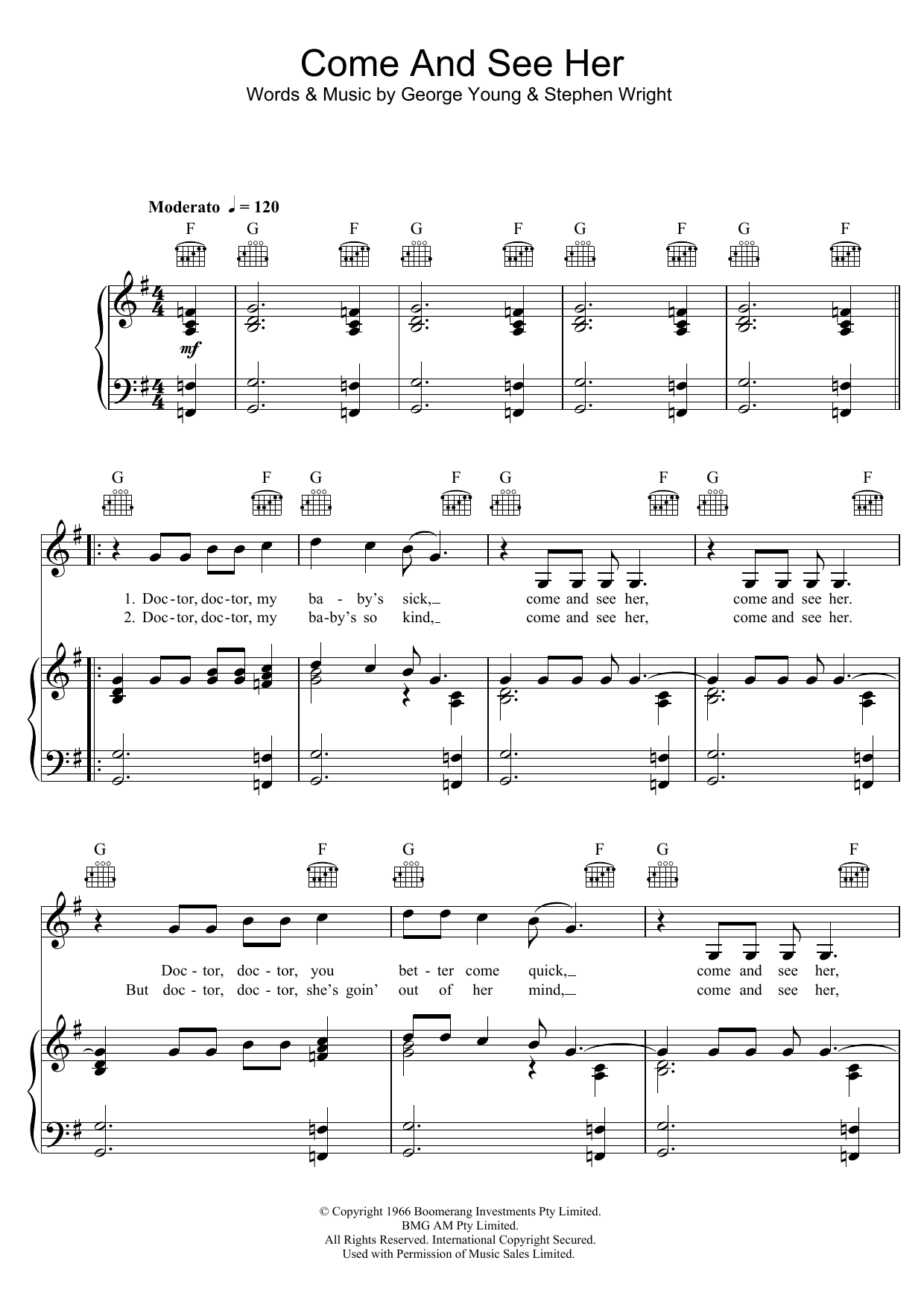 Download or print The Easybeats Come And See Her sheet music, chords and digital score arranged for Piano, Vocal & Guitar Chords. This Pop score includes 4 page(s).