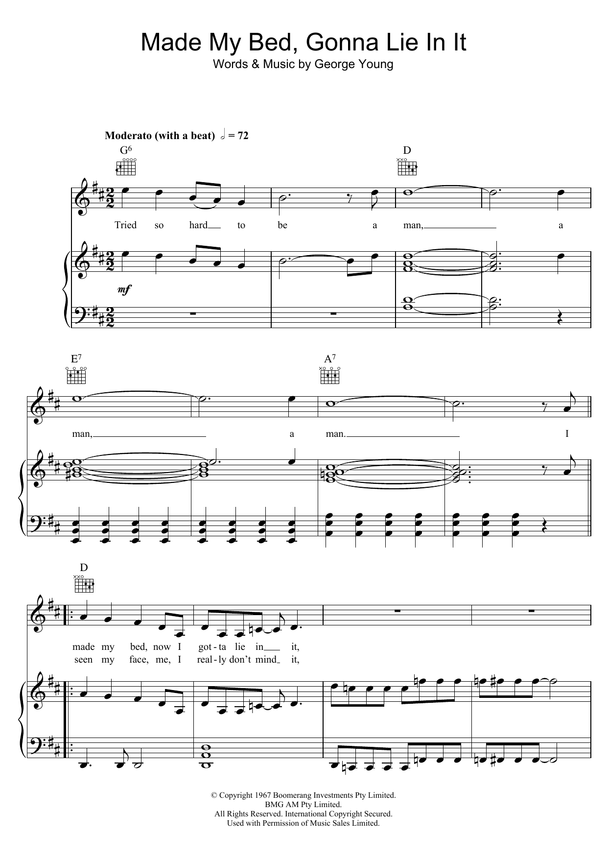 Download or print The Easybeats Made My Bed, Gonna Lie In It sheet music, chords and digital score arranged for Piano, Vocal & Guitar Chords. This Pop score includes 4 page(s).
