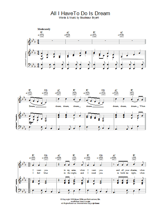 Quick facts All I Have To Do Is Dream about digital sheet music