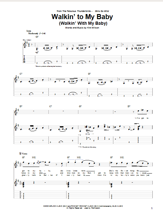 Download or print Fabulous Thunderbirds Walkin' To My Baby (Walkin' With My Baby) sheet music, chords and digital score arranged for Guitar Tab. This Blues score includes 4 page(s).