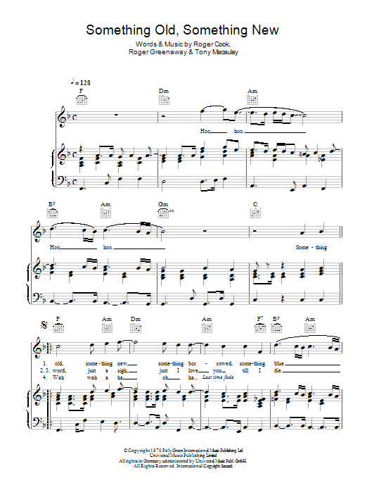 Download or print The Fantastics Something Old, Something New sheet music, chords and digital score arranged for Piano, Vocal & Guitar Chords. This Standards score includes 4 page(s).