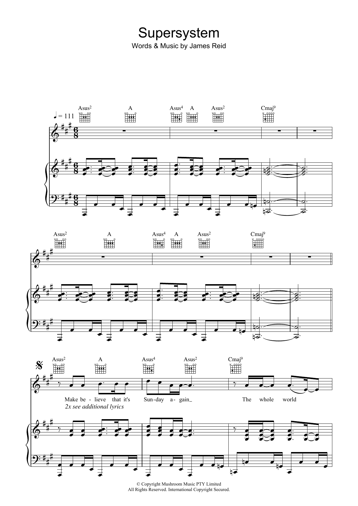 Download or print The Feelers Supersystem sheet music, chords and digital score arranged for Piano, Vocal & Guitar Chords. This Pop score includes 8 page(s).