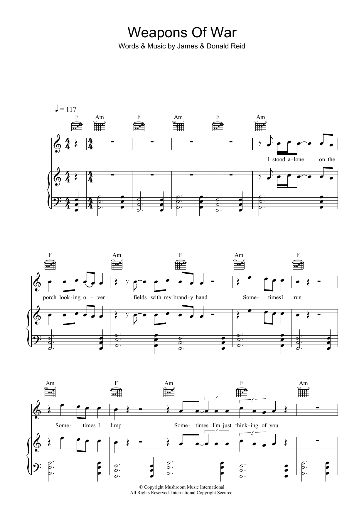 Download or print The Feelers Weapons Of War sheet music, chords and digital score arranged for Piano, Vocal & Guitar Chords. This Pop score includes 6 page(s).