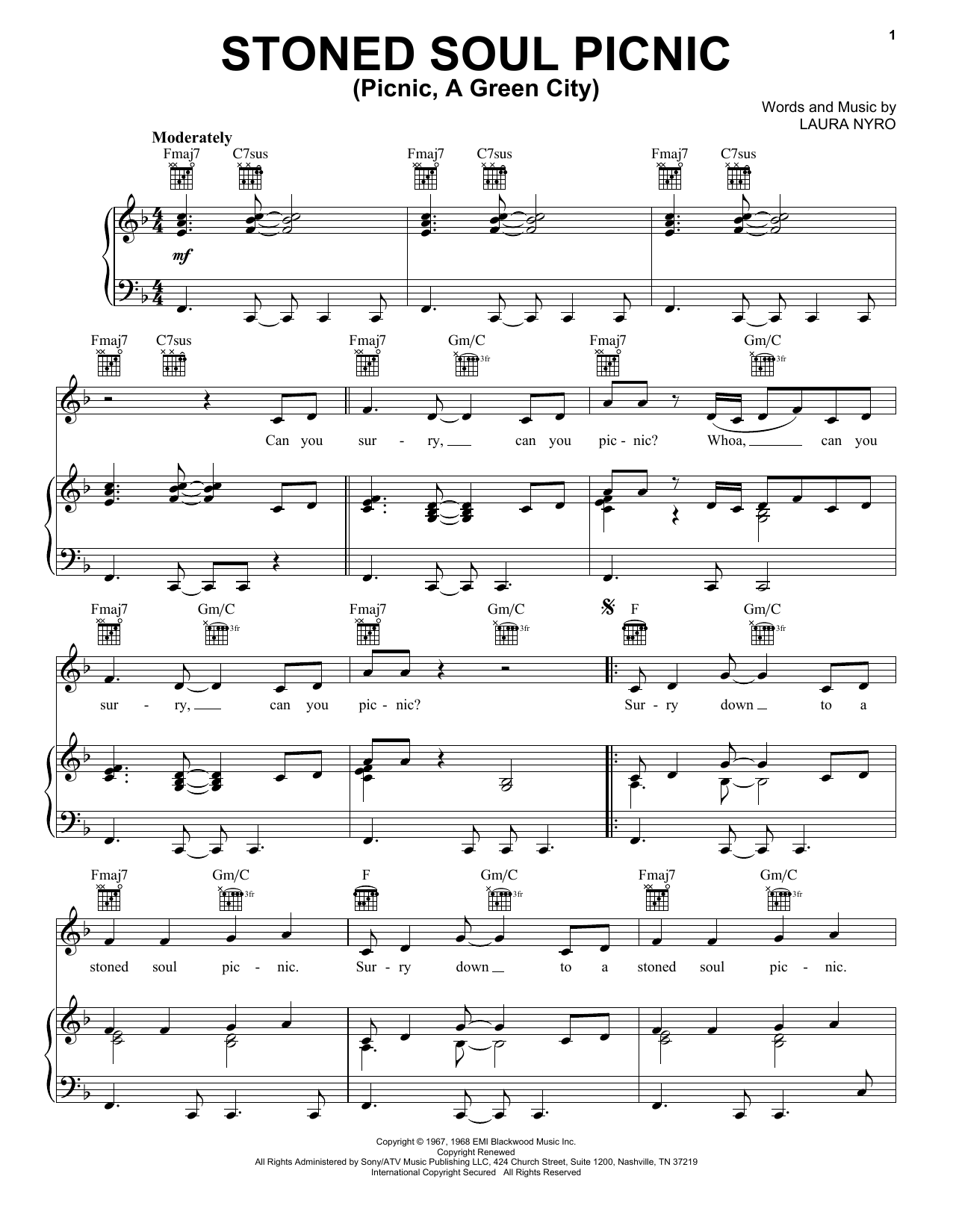 Download or print The Fifth Dimension Stoned Soul Picnic (Picnic, A Green City) sheet music, chords and digital score arranged for Piano, Vocal & Guitar Chords (Right-Hand Melody). This Pop score includes 4 page(s).