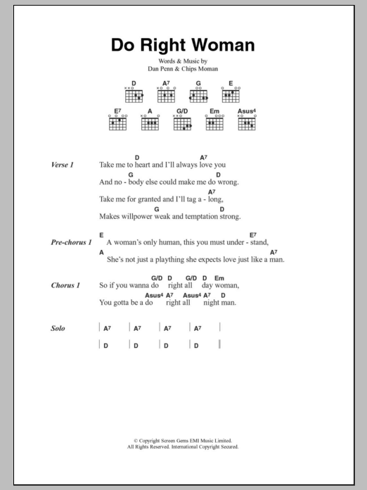 Quick facts Do Right Woman about digital sheet music
