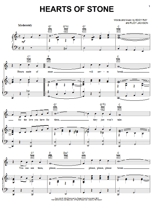 Download or print The Fontane Sisters Hearts Of Stone sheet music, chords and digital score arranged for Lead Sheet / Fake Book. This Pop score includes 1 page(s).