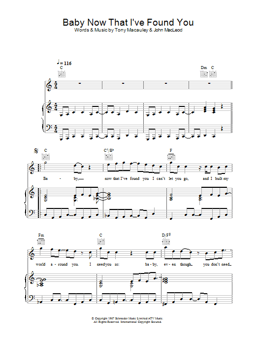 Quick facts Baby, Now That I've Found You about digital sheet music