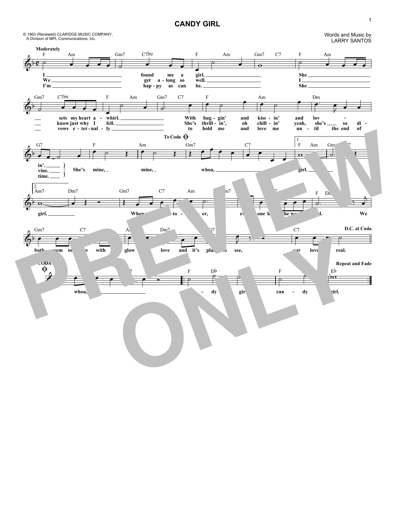 Download or print The Four Seasons Candy Girl sheet music, chords and digital score arranged for Lead Sheet / Fake Book. This Pop score includes 1 page(s).