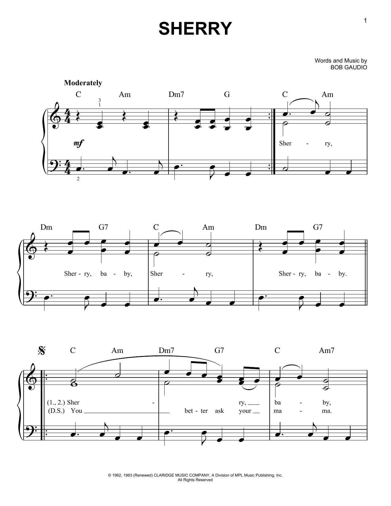 Download or print The Four Seasons Sherry sheet music, chords and digital score arranged for Cello Solo. This Oldies score includes 1 page(s).