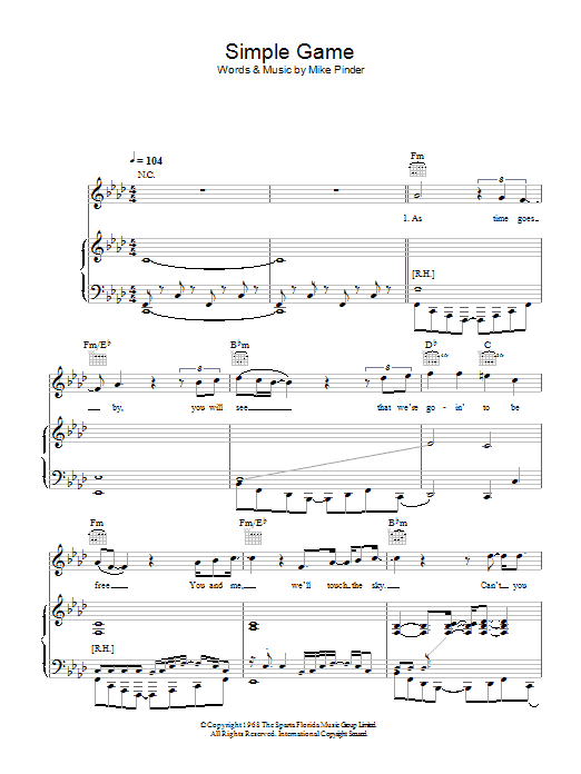 Download or print The Four Tops A Simple Game sheet music, chords and digital score arranged for Guitar Chords/Lyrics. This Pop score includes 3 page(s).