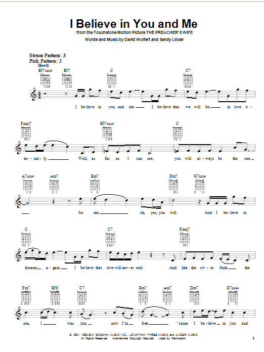 Download or print The Four Tops I Believe In You And Me sheet music, chords and digital score arranged for Lead Sheet / Fake Book. This Love score includes 2 page(s).