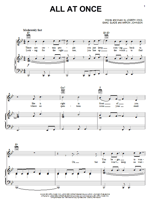 Download or print The Fray All At Once sheet music, chords and digital score arranged for Piano, Vocal & Guitar Chords (Right-Hand Melody). This Pop score includes 8 page(s).