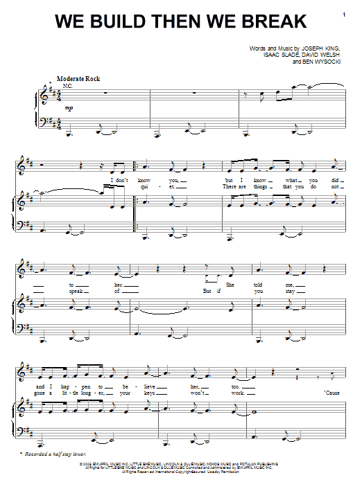 Download or print The Fray We Build Then We Break sheet music, chords and digital score arranged for Piano, Vocal & Guitar Chords (Right-Hand Melody). This Pop score includes 5 page(s).