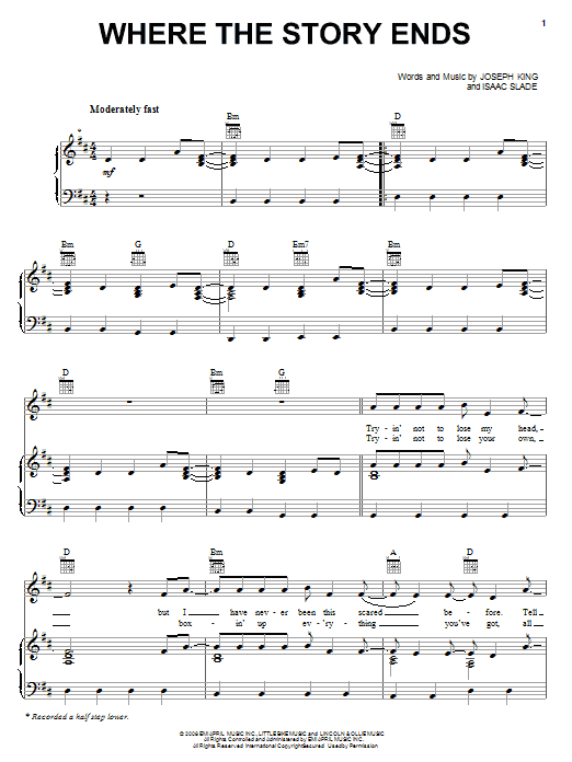 Download or print The Fray Where The Story Ends sheet music, chords and digital score arranged for Piano, Vocal & Guitar Chords (Right-Hand Melody). This Pop score includes 5 page(s).