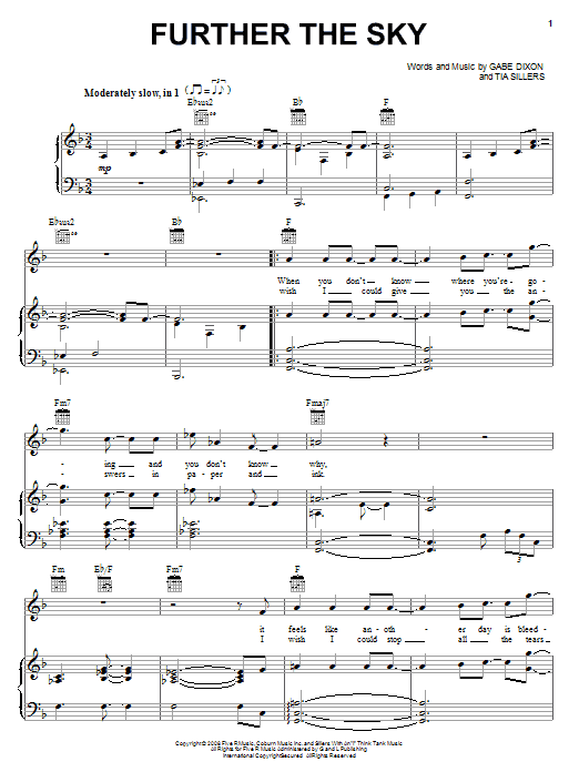 Download or print The Gabe Dixon Band Further The Sky sheet music, chords and digital score arranged for Piano, Vocal & Guitar Chords (Right-Hand Melody). This Alternative score includes 8 page(s).