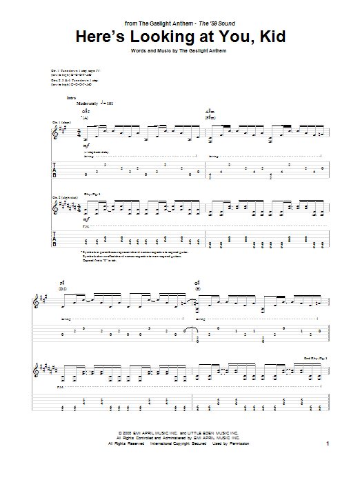 Download or print The Gaslight Anthem Here's Looking At You, Kid sheet music, chords and digital score arranged for Guitar Tab. This Pop score includes 16 page(s).