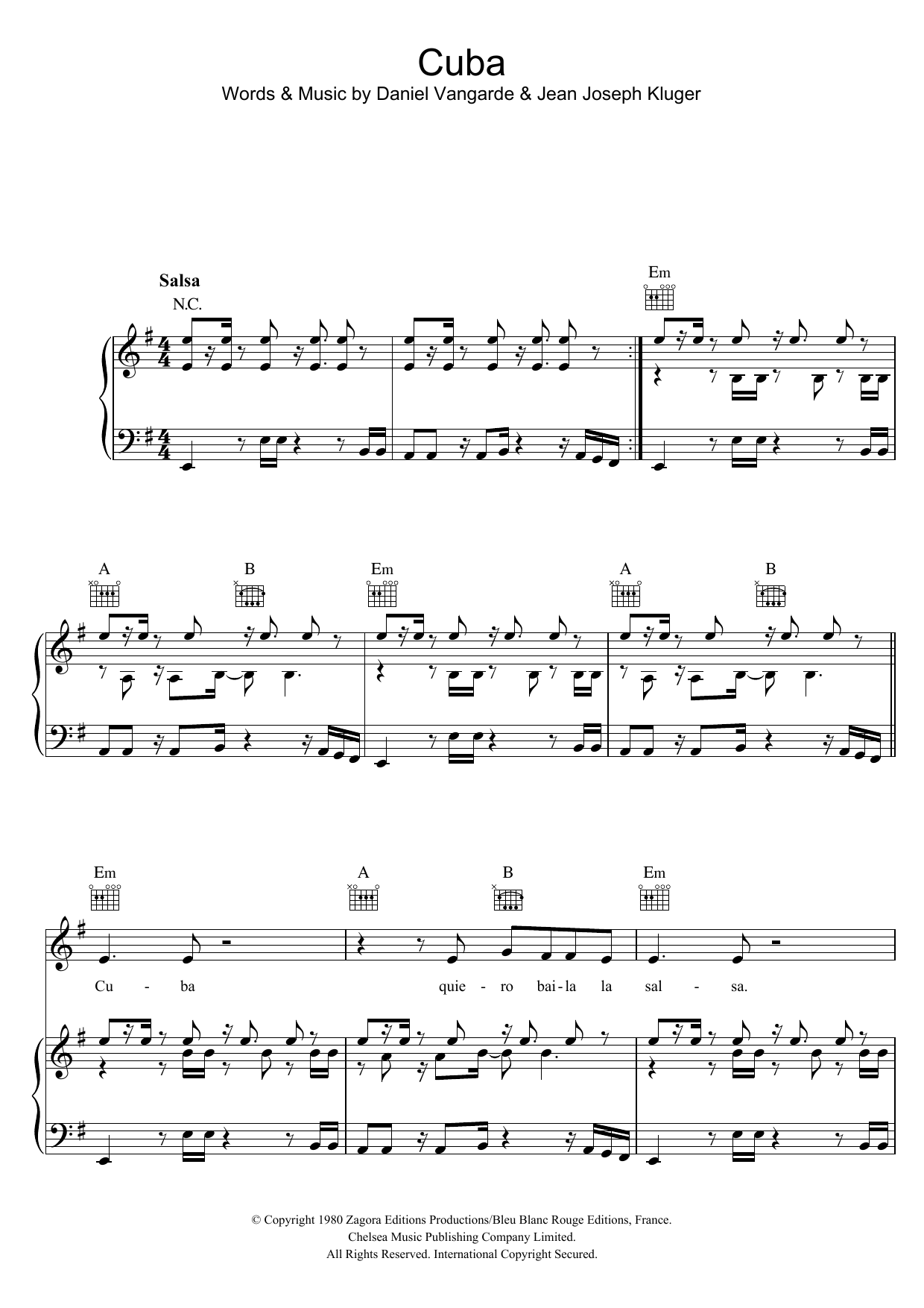 Download or print The Gibson Brothers Cuba sheet music, chords and digital score arranged for Piano, Vocal & Guitar Chords. This Latin score includes 5 page(s).