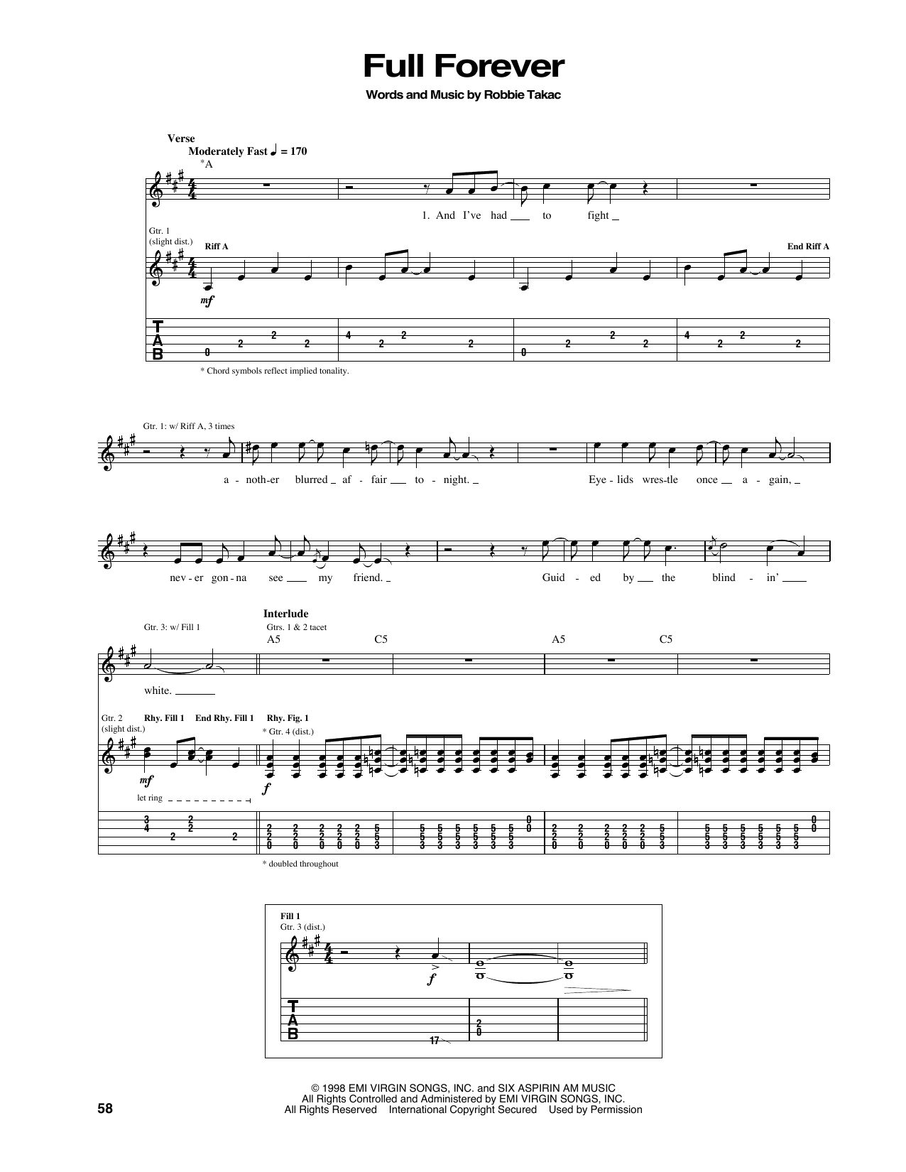 Download or print The Goo Goo Dolls Full Forever sheet music, chords and digital score arranged for Piano, Vocal & Guitar Chords (Right-Hand Melody). This Pop score includes 6 page(s).