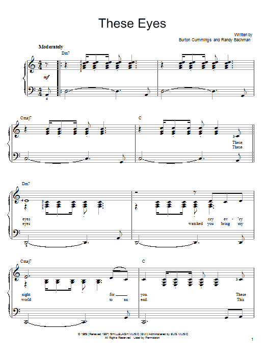 Download or print The Guess Who These Eyes sheet music, chords and digital score arranged for Easy Piano. This Rock score includes 5 page(s).