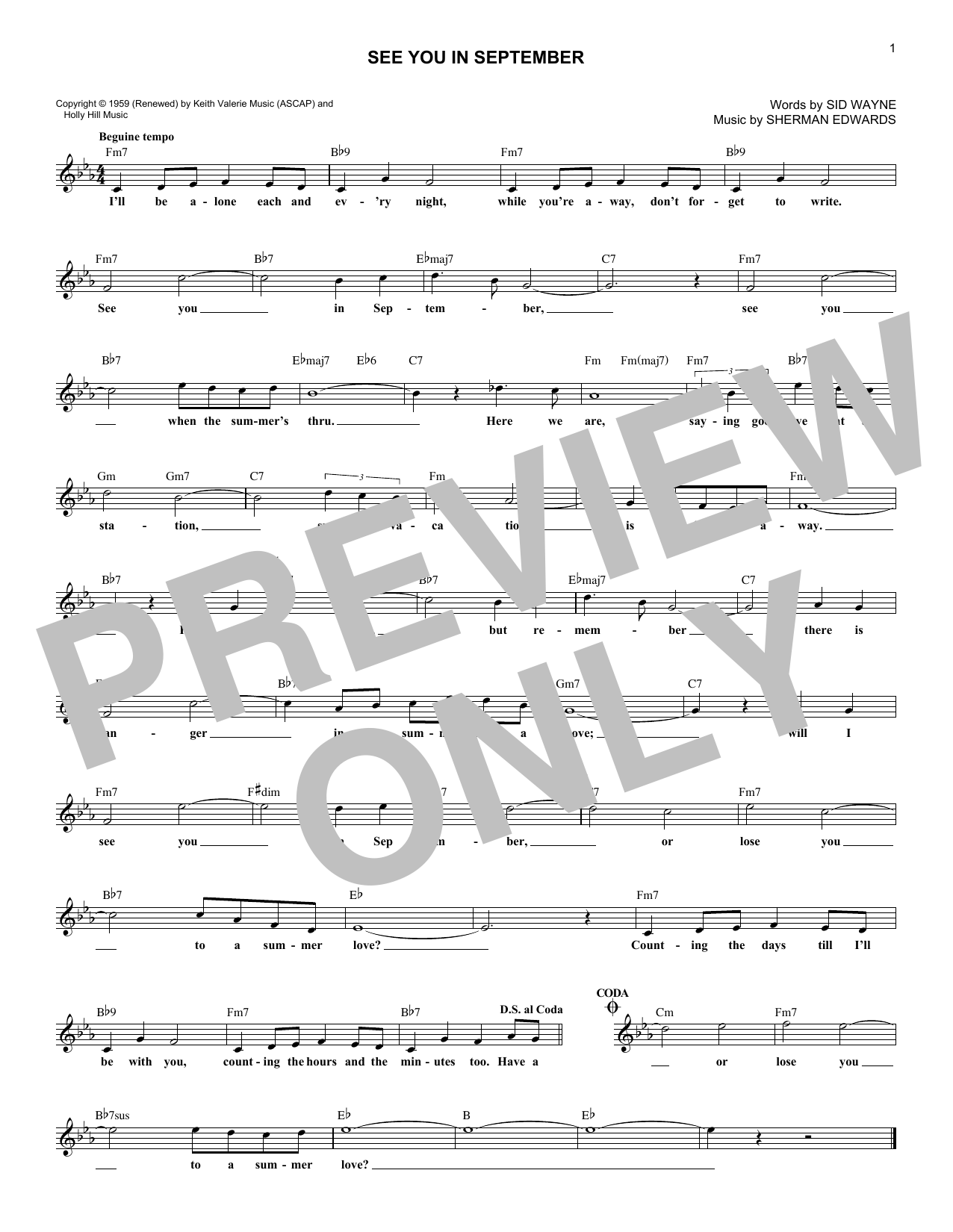 Download or print The Happenings See You In September sheet music, chords and digital score arranged for Lead Sheet / Fake Book. This Oldies score includes 1 page(s).