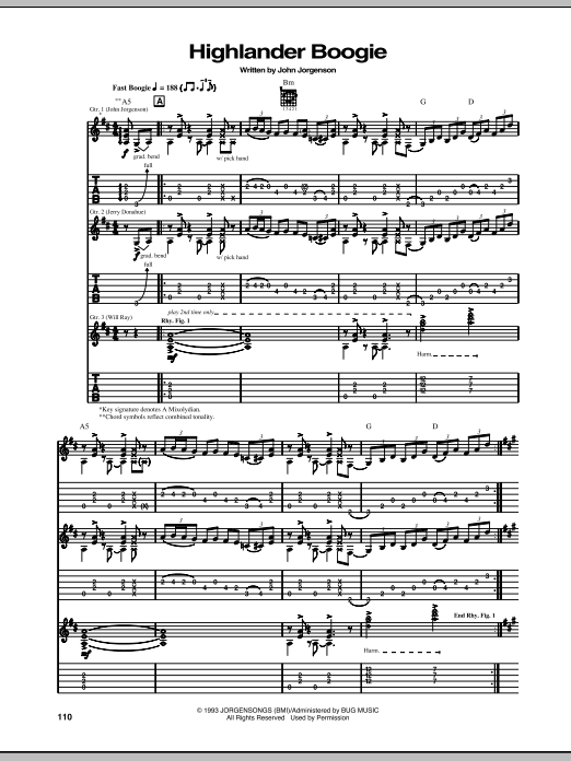 Download or print The Hellecasters Highlander Boogie sheet music, chords and digital score arranged for Guitar Tab. This Pop score includes 9 page(s).