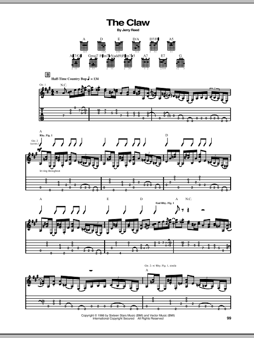 Download or print The Hellecasters The Claw sheet music, chords and digital score arranged for Guitar Tab. This Country score includes 7 page(s).