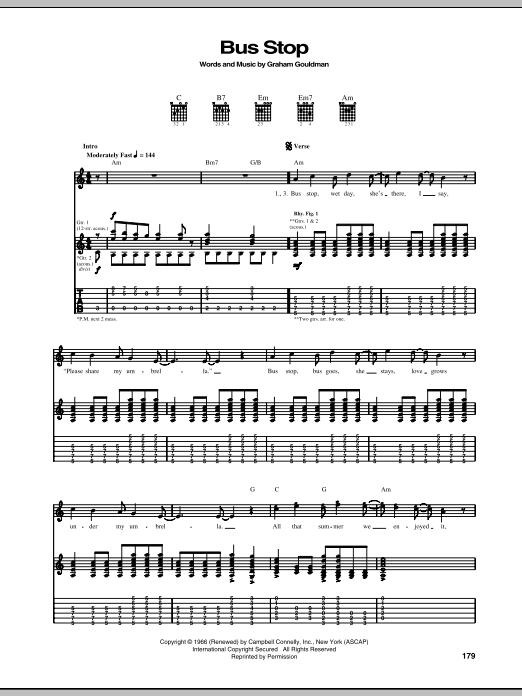 Download or print The Hollies Bus Stop sheet music, chords and digital score arranged for Piano, Vocal & Guitar Chords (Right-Hand Melody). This Pop score includes 4 page(s).