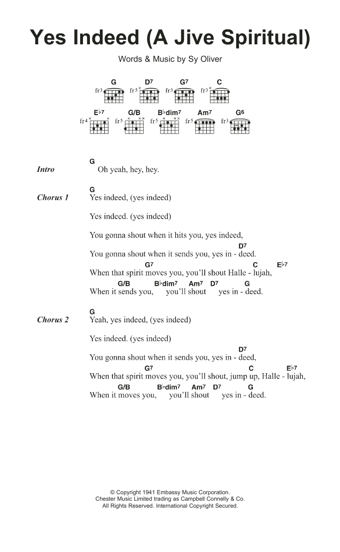 Download or print The Isley Brothers Yes Indeed (A Jive Spiritual) sheet music, chords and digital score arranged for Guitar Chords/Lyrics. This Pop score includes 2 page(s).