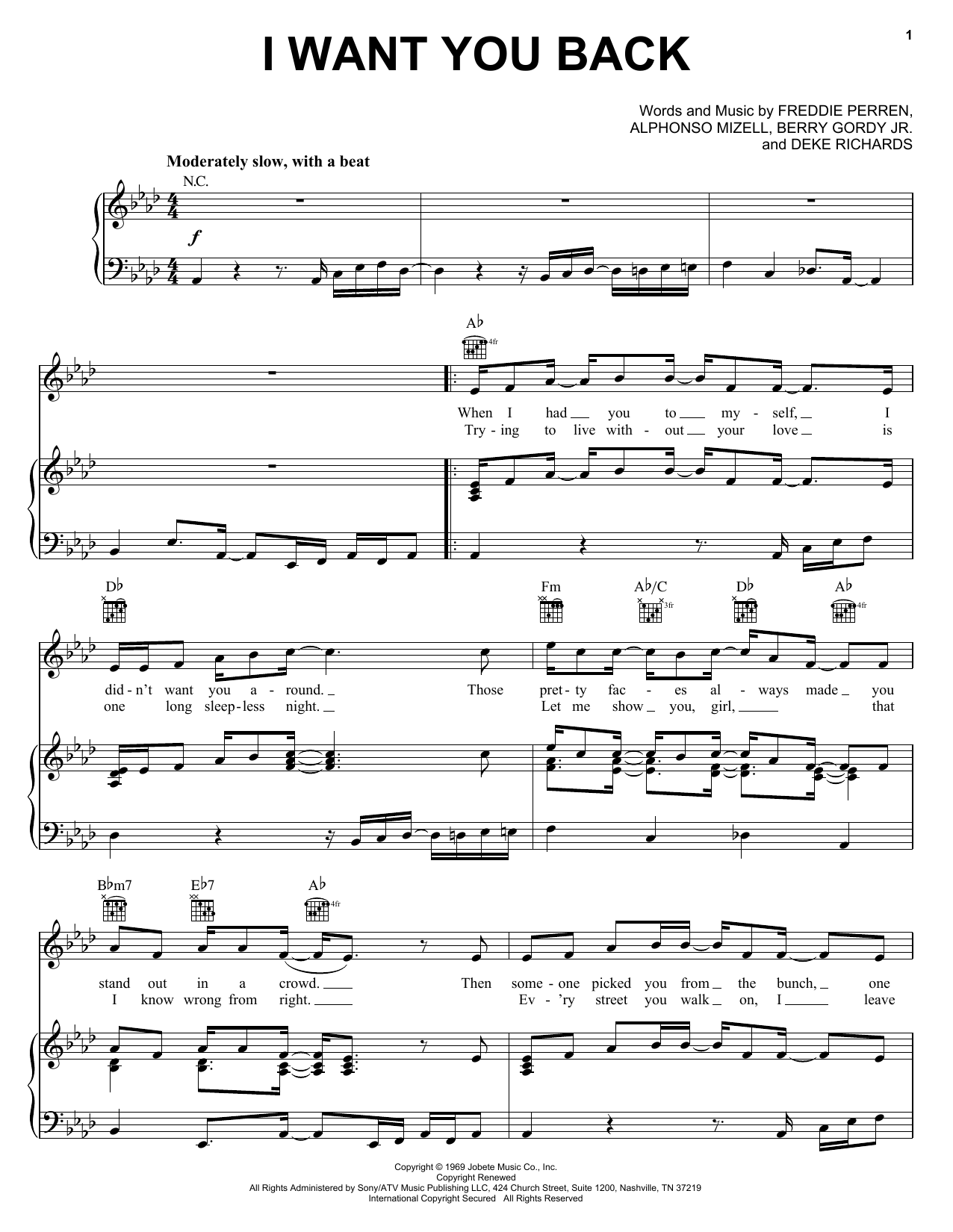 Download or print The Jackson 5 I Want You Back sheet music, chords and digital score arranged for Easy Piano. This Rock score includes 5 page(s).