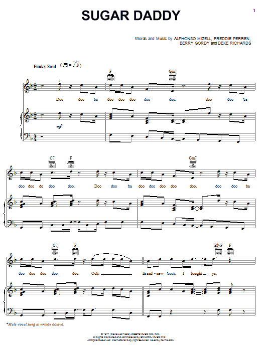 Download or print The Jackson 5 Sugar Daddy sheet music, chords and digital score arranged for Easy Piano. This Pop score includes 6 page(s).