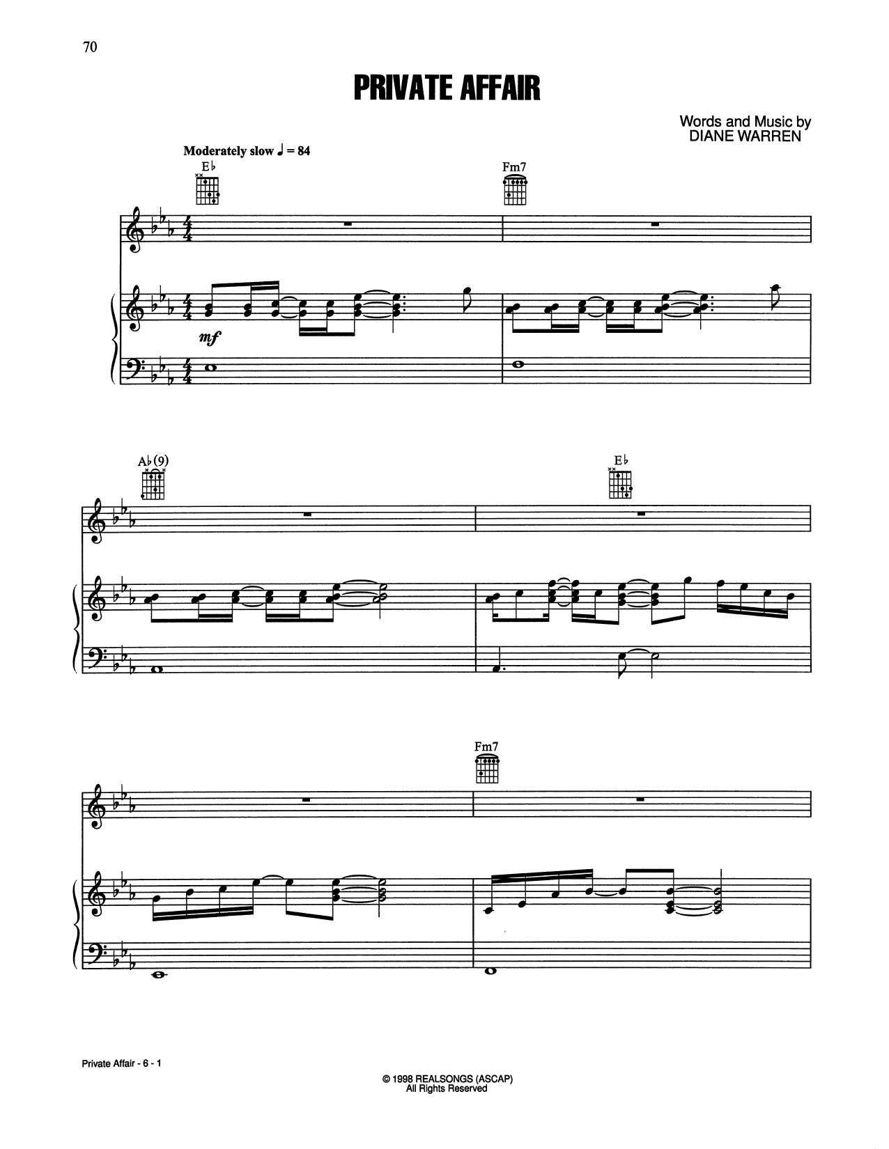 Download or print The Jacksons Private Affair sheet music, chords and digital score arranged for Piano, Vocal & Guitar Chords (Right-Hand Melody). This Pop score includes 6 page(s).
