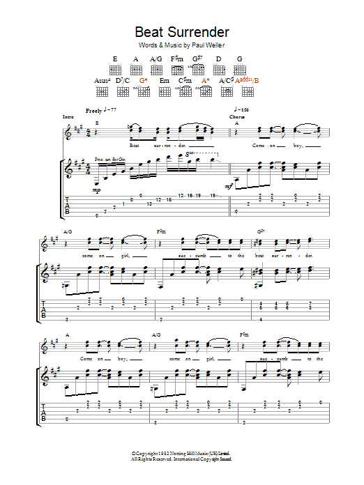 Download or print The Jam Beat Surrender sheet music, chords and digital score arranged for Guitar Chords/Lyrics. This Rock score includes 3 page(s).