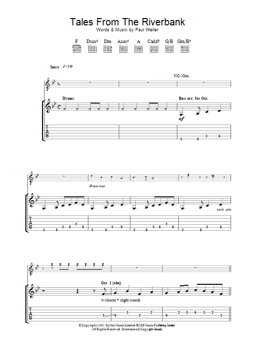 Download or print The Jam Tales From The Riverbank sheet music, chords and digital score arranged for Guitar Chords/Lyrics. This Punk score includes 2 page(s).