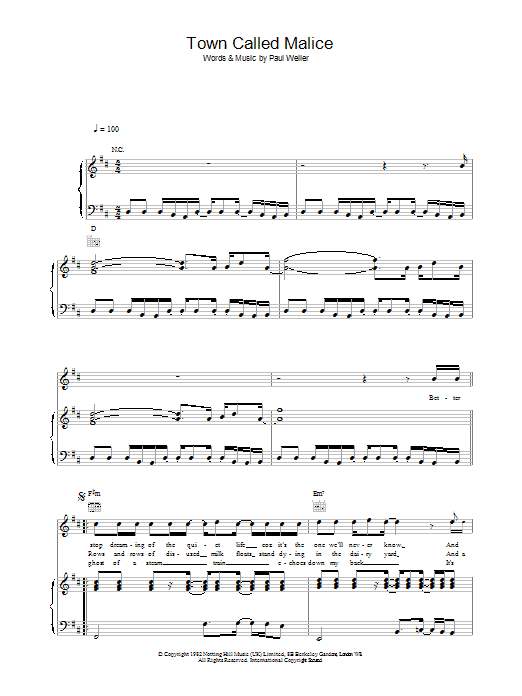 Quick facts Town Called Malice about digital sheet music