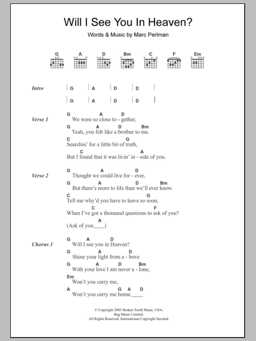Quick facts Will I See You In Heaven about digital sheet music