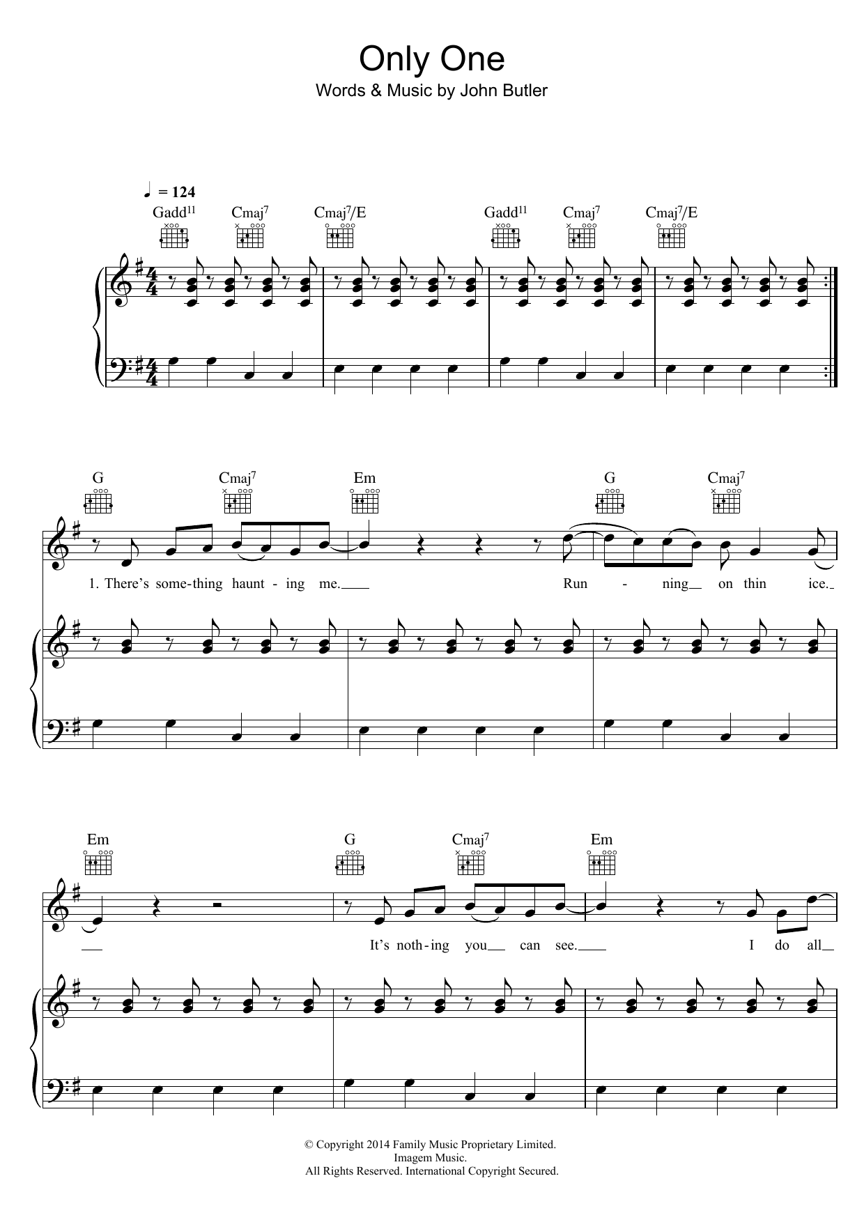Download or print The John Butler Trio Only One sheet music, chords and digital score arranged for Piano, Vocal & Guitar Chords. This Pop score includes 7 page(s).