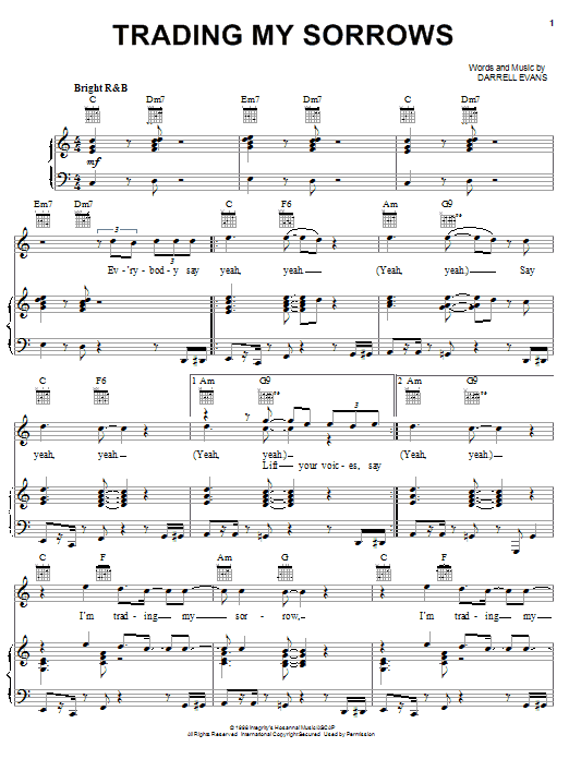 Download or print The Katinas Trading My Sorrows sheet music, chords and digital score arranged for Piano, Vocal & Guitar Chords (Right-Hand Melody). This Pop score includes 8 page(s).