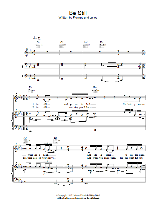 Download or print The Killers Be Still sheet music, chords and digital score arranged for Piano, Vocal & Guitar Chords. This Pop score includes 6 page(s).