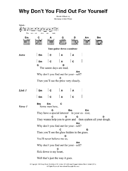 Download or print The Killers Why Don't You Find Out For Yourself sheet music, chords and digital score arranged for Guitar Chords/Lyrics. This Rock score includes 2 page(s).