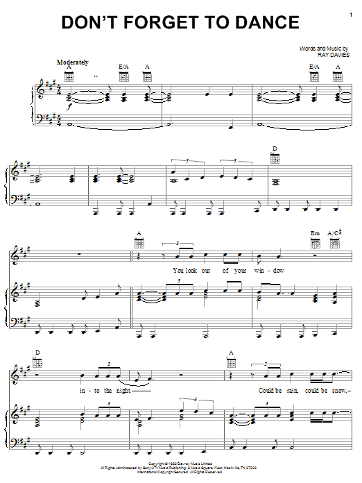 Download or print The Kinks Don't Forget To Dance sheet music, chords and digital score arranged for Piano, Vocal & Guitar Chords (Right-Hand Melody). This Pop score includes 9 page(s).