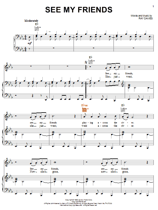 Download or print The Kinks See My Friends sheet music, chords and digital score arranged for Piano, Vocal & Guitar Chords (Right-Hand Melody). This Pop score includes 3 page(s).