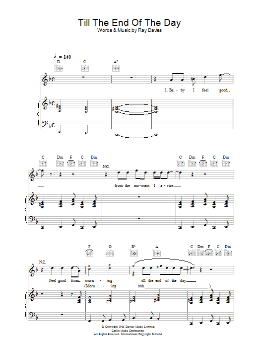 Download or print The Kinks Till The End Of The Day sheet music, chords and digital score arranged for Guitar Chords/Lyrics. This Rock score includes 3 page(s).