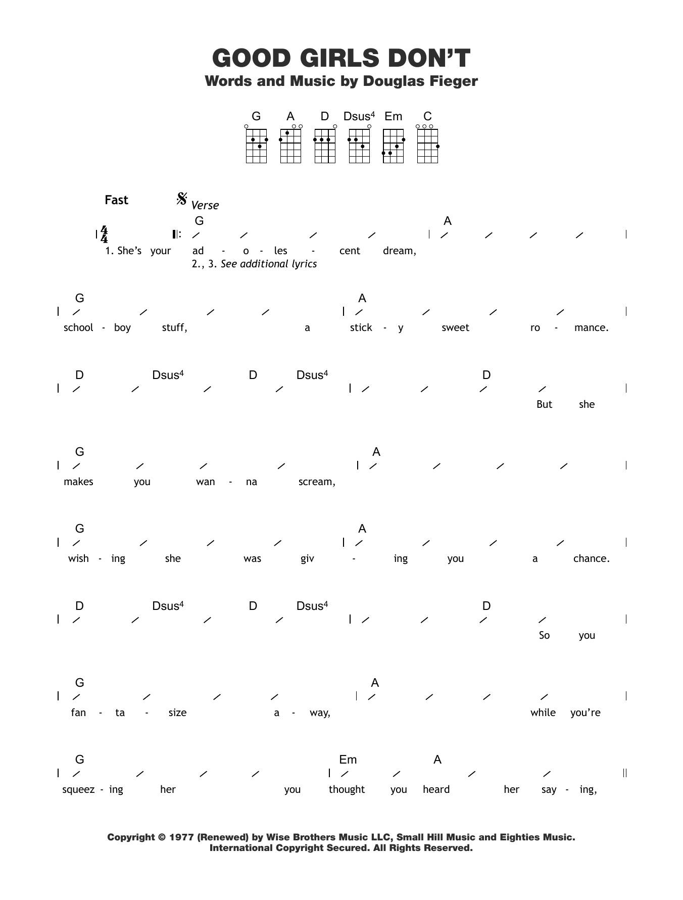 Download or print The Knack Good Girls Don't sheet music, chords and digital score arranged for Ukulele Chords/Lyrics. This Rock score includes 3 page(s).