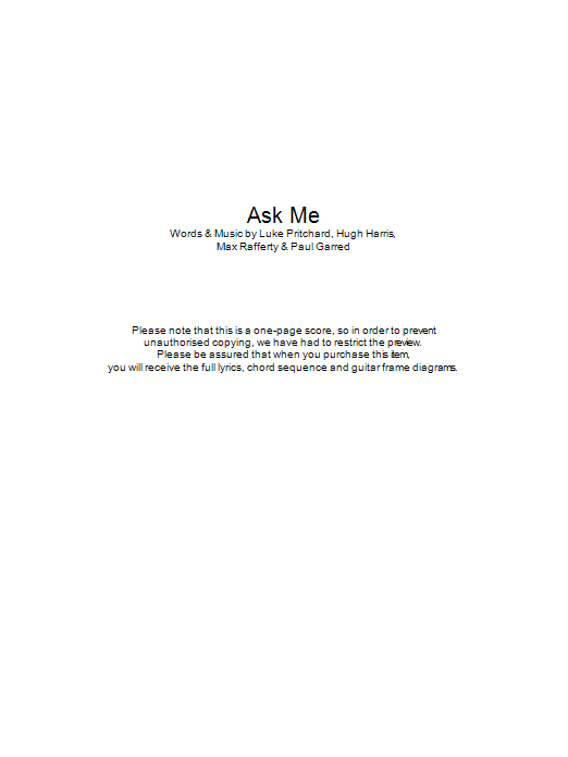 Download or print The Kooks Ask Me sheet music, chords and digital score arranged for Guitar Chords/Lyrics. This Rock score includes 2 page(s).