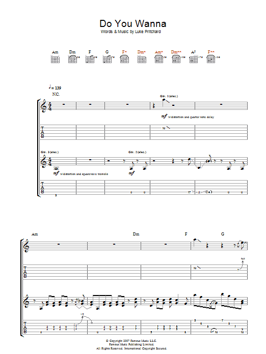 Download or print The Kooks Do You Wanna sheet music, chords and digital score arranged for Guitar Tab. This Rock score includes 12 page(s).
