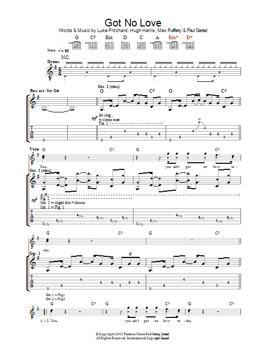 Download or print The Kooks Got No Love sheet music, chords and digital score arranged for Guitar Tab. This Rock score includes 4 page(s).