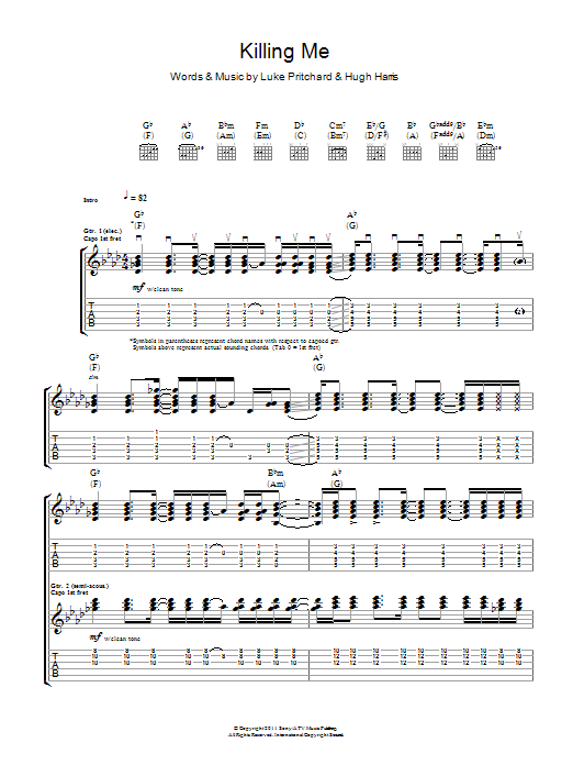 Download or print The Kooks Killing Me sheet music, chords and digital score arranged for Guitar Tab. This Rock score includes 10 page(s).