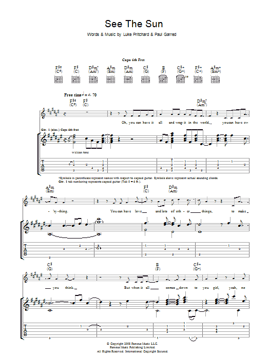 Download or print The Kooks See The Sun sheet music, chords and digital score arranged for Guitar Tab. This Rock score includes 7 page(s).